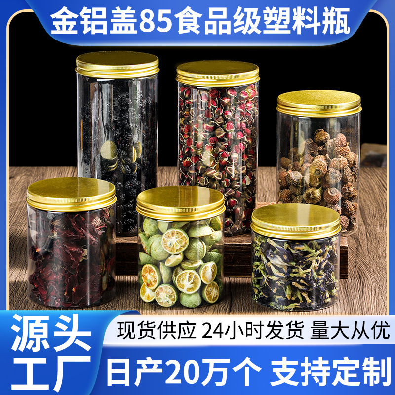 金アルミ蓋プラスチック瓶85pet食品級高透プラスチック缶ナッツ粗食花茶貯蔵物広口瓶