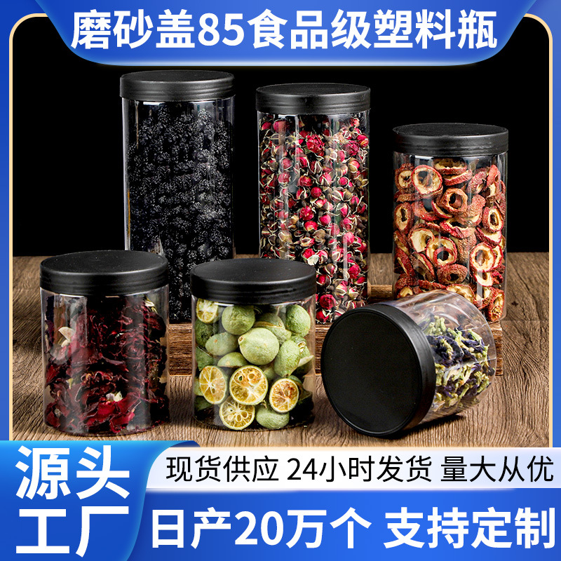 現物直供85フロストブラックキャップpetボトル食品級透明プラスチック缶ペットボトル花茶ナッツ広口瓶
