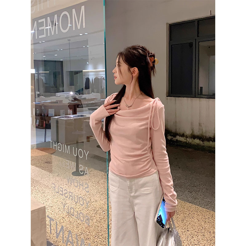 秋の長袖tシャツの新型の肩の側のバンドのデザイン感があります。