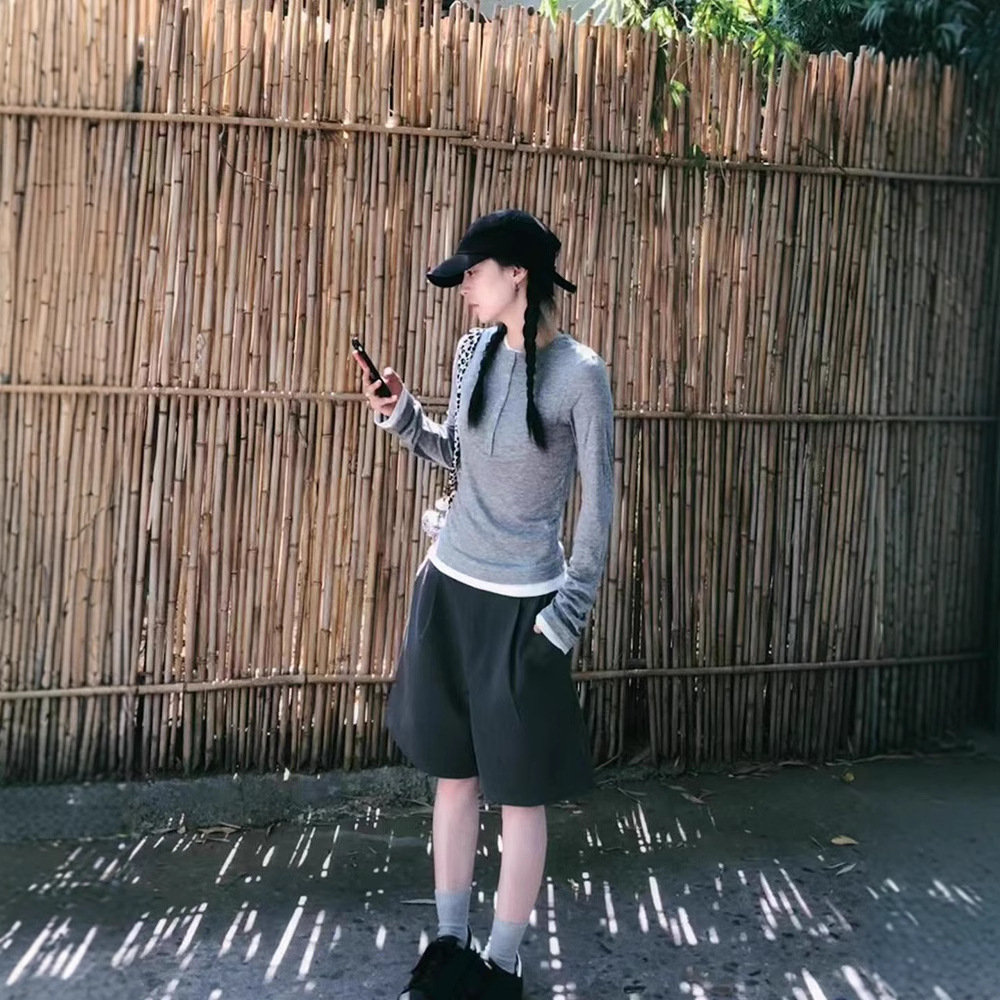 早秋2024新型ギャルは斜め肩の長袖tシャツを持っています。