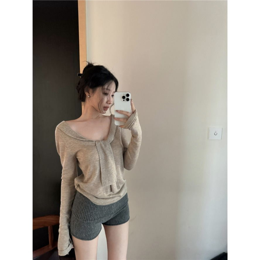 2024春秋ファッション小香風蝶結び長袖ニットカーディガンtシャツスリム着痩せ不規則上着ins
