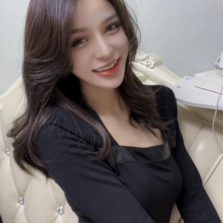 甘いギャルのセクシーな方襟の長袖のtシャツの秋冬の修身はやせています。