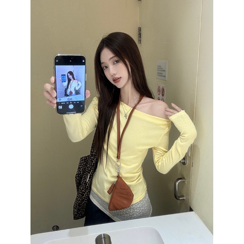 純欲風甘ギャル長袖首掛けtシャツ女性の早秋デザイン感がスリムに見えます。