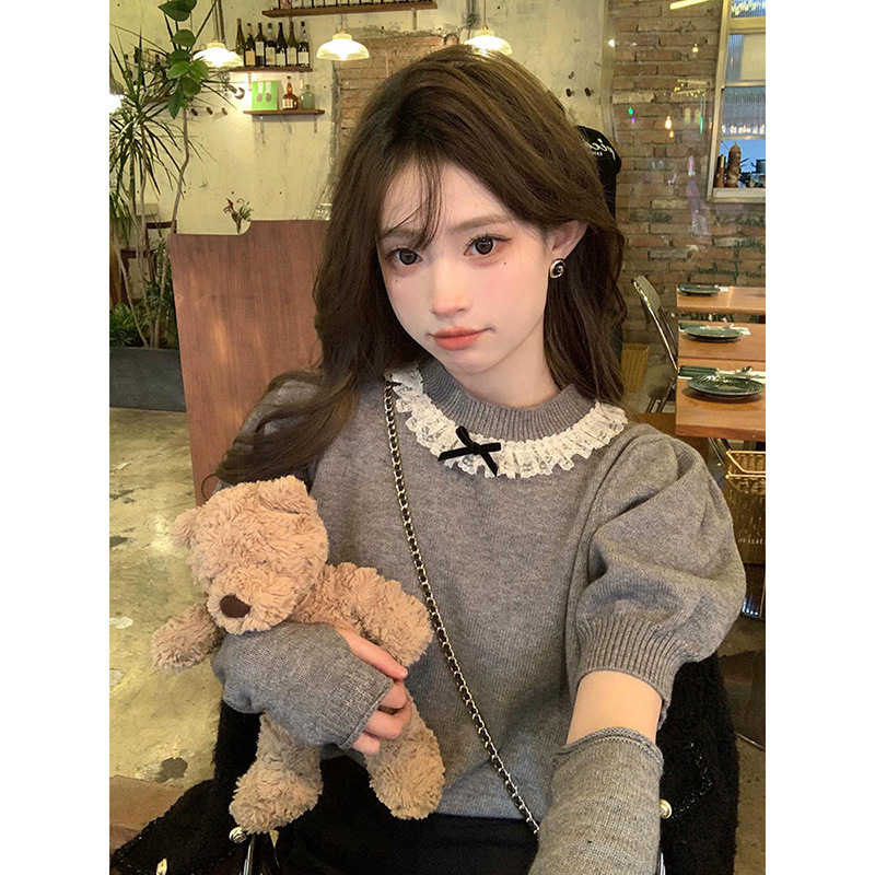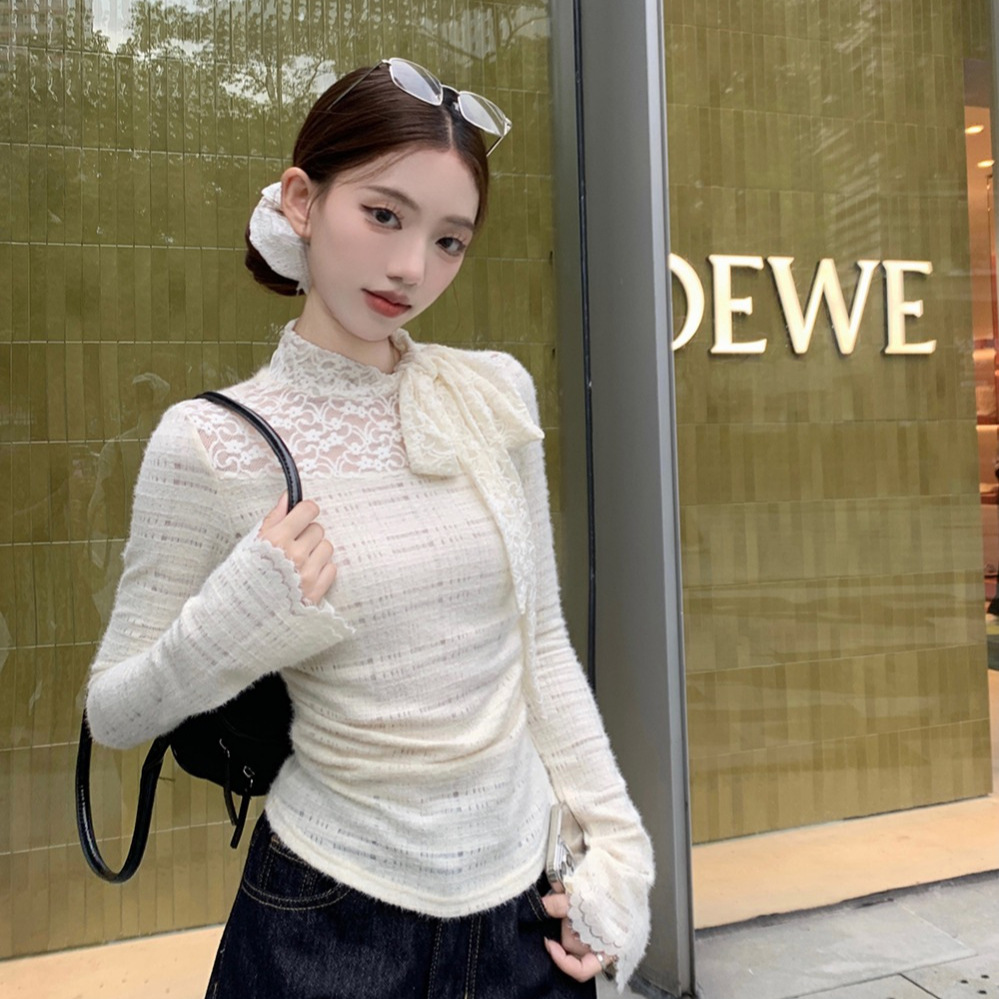 2024新型レース蝶結びtシャツ女装早秋デザイン感小香風ギャルセクシー純欲風上着