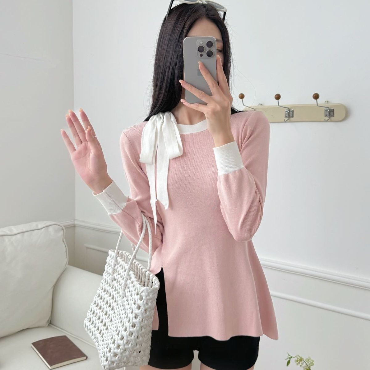 蝶結びのセーターはだらだらしています。