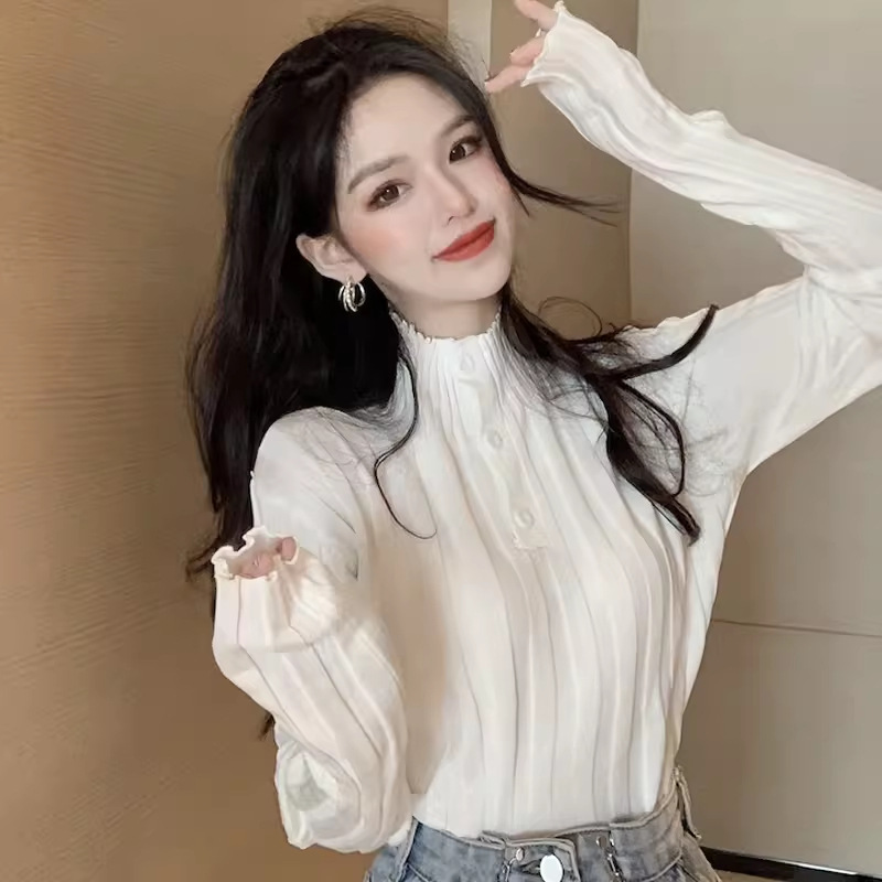 ギャルのセクシーな白い半高襟の底のシャツのtシャツの秋冬の中は2024年の新型のニットの長袖の上着を掛けます。