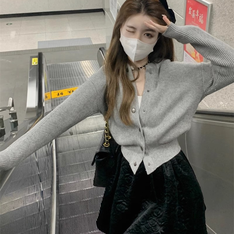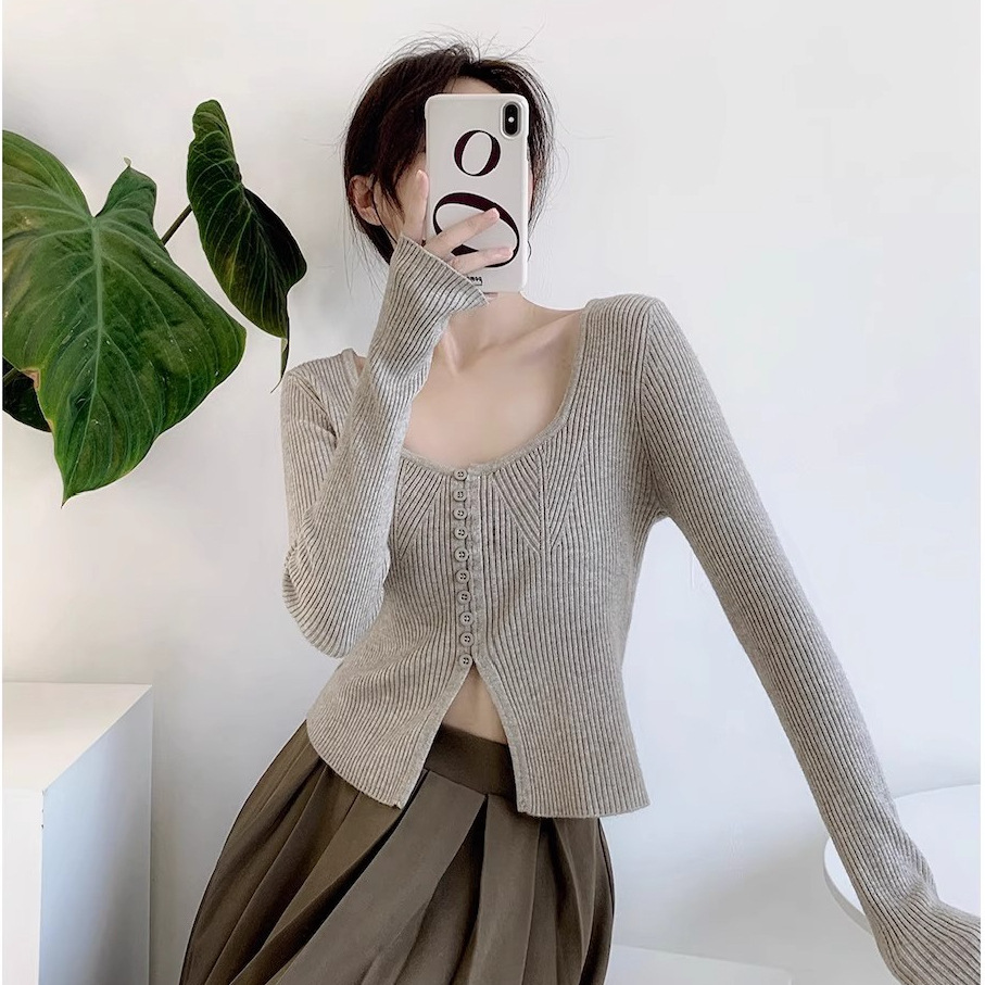 純欲風ギャル長袖メリヤスカーディガンtシャツ秋冬スリムシックシックセクシー大衆ファッション上着ins