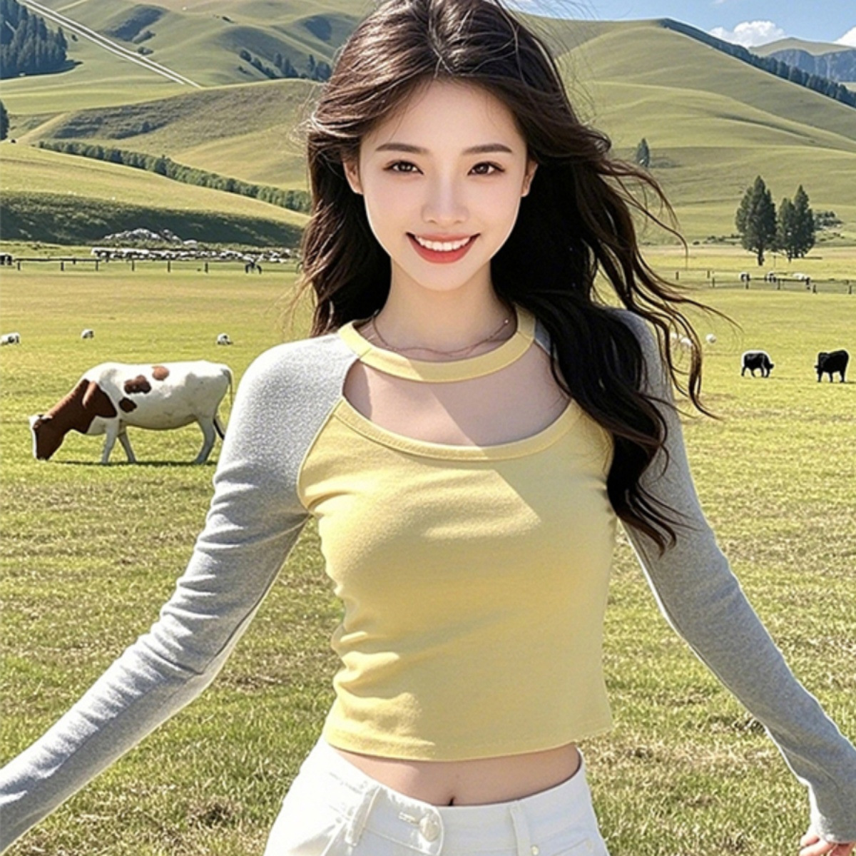 2024春秋独特のユニークな甘いギャルの長袖tシャツのデザイン感があります。