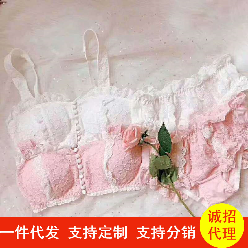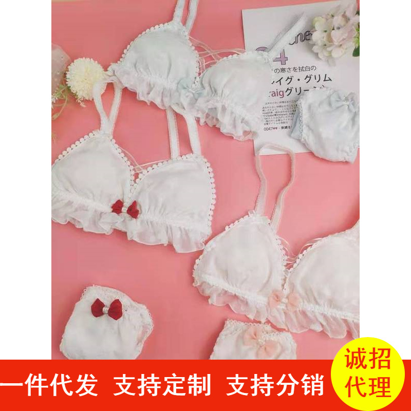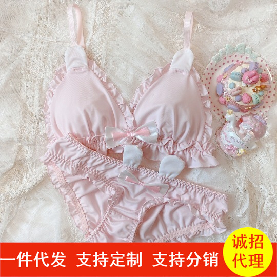 日系ロリータ少女蝶結びウサギかわいいスチールリングなし三角カップ快適学生ブラジャーセット下着