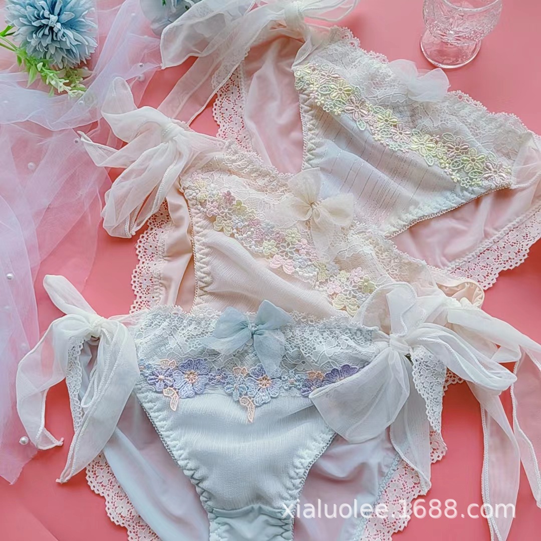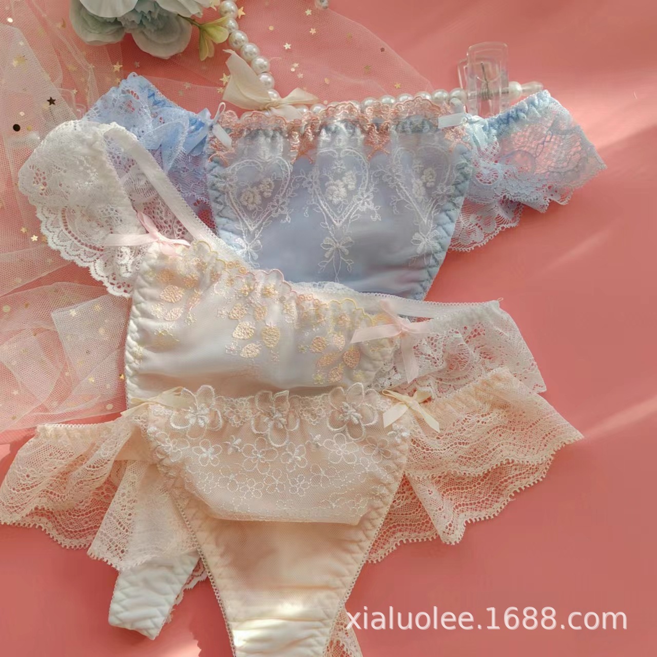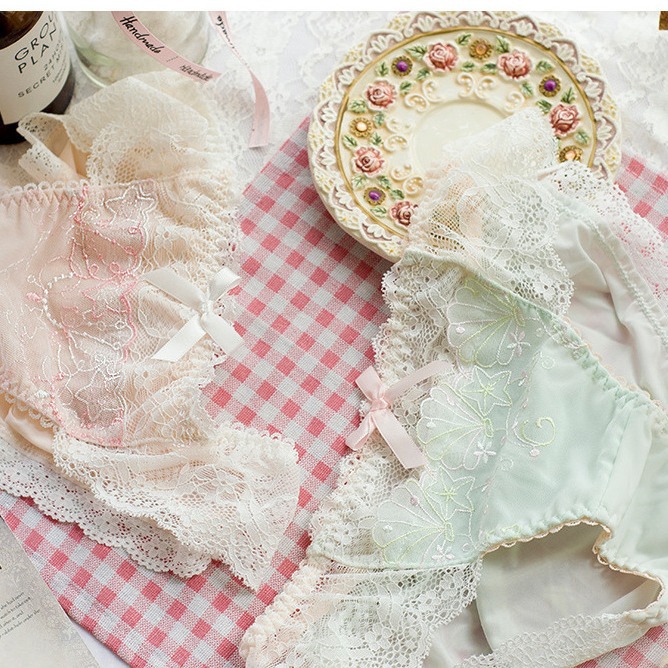 低腰レース刺繍小清新少女下着スポットレース刺繍プリント下着