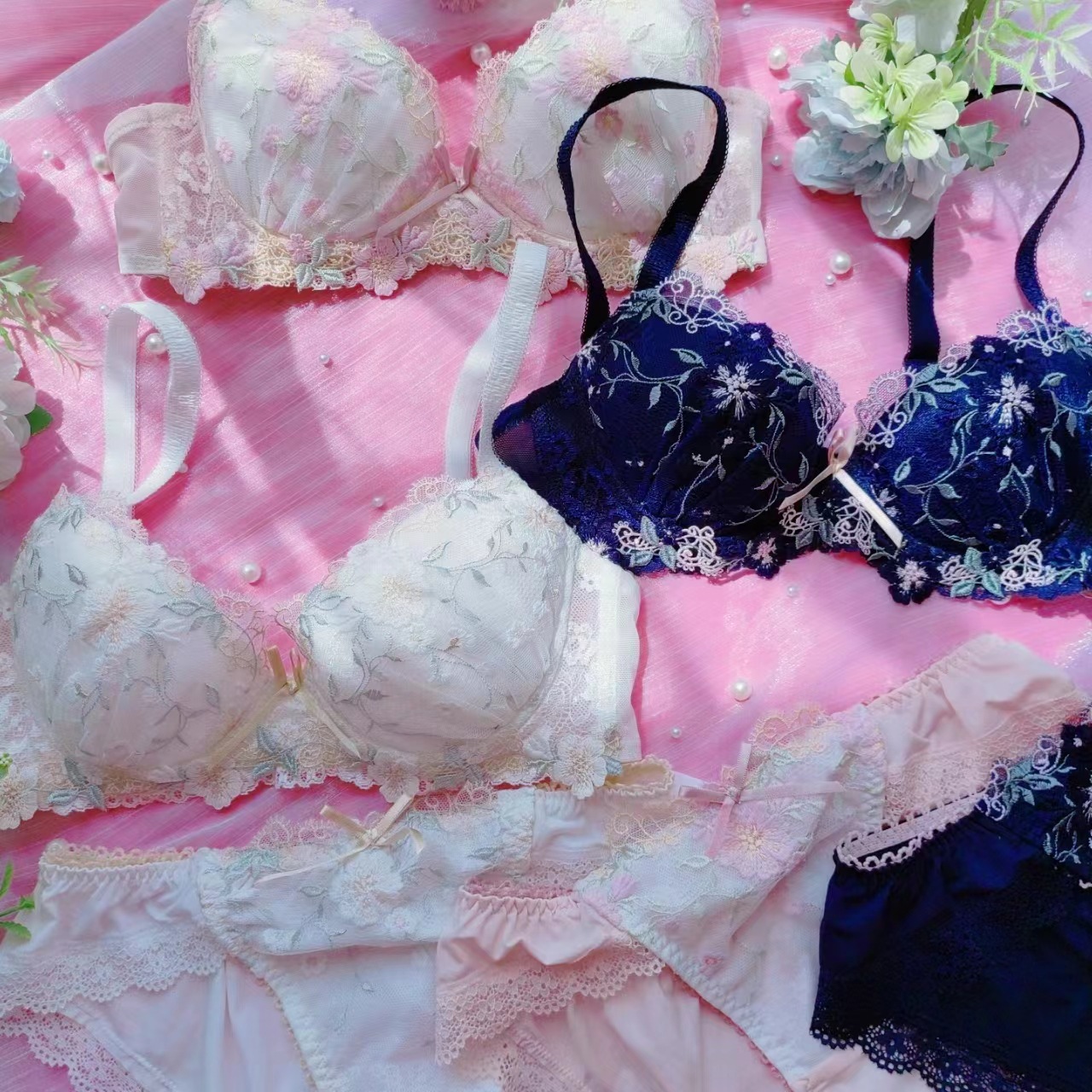 日本のR家の甘い女子学生のレースの刺繍のカップの薄いタイプの快適な集まっている少女の下着のブラジャーのスーツの水溶性