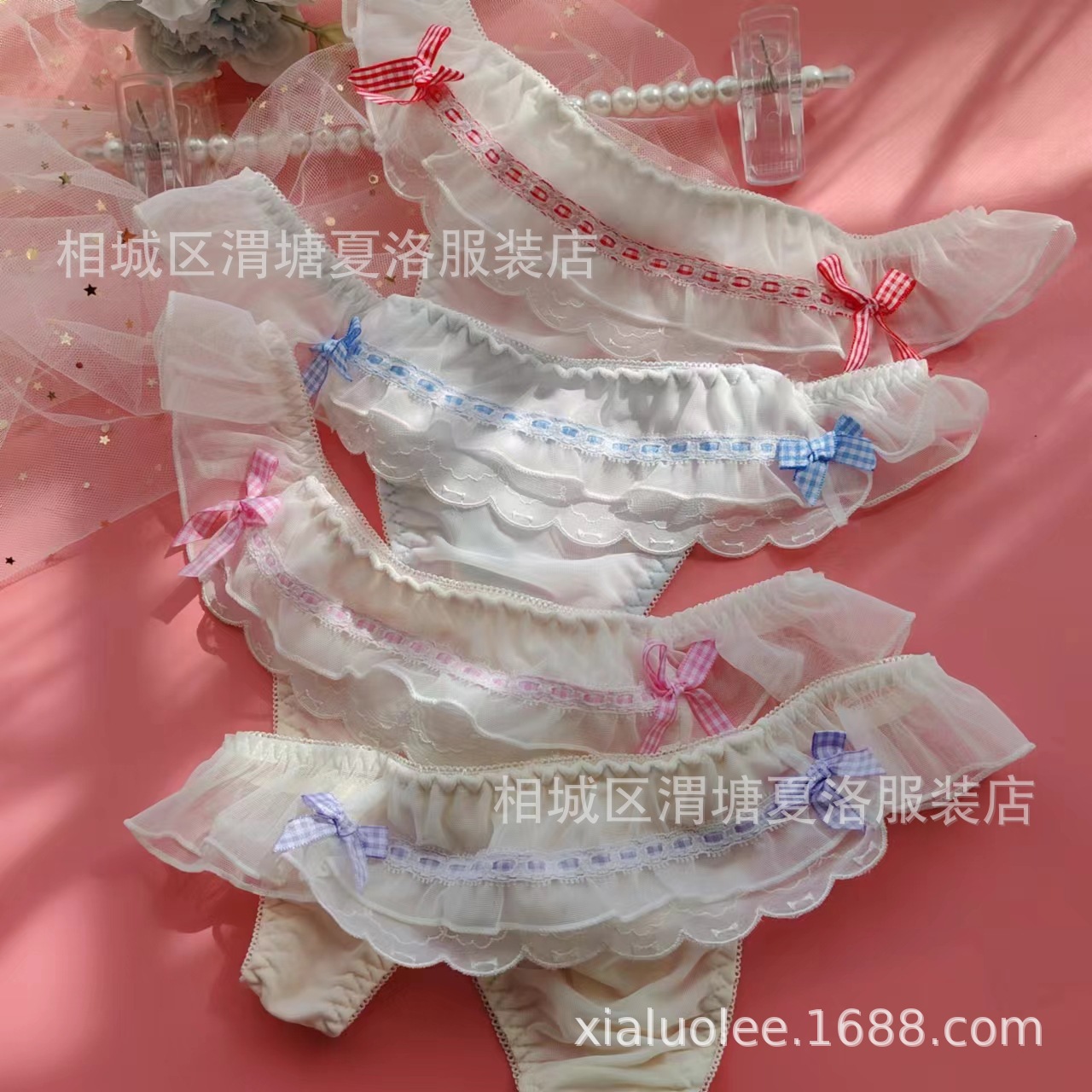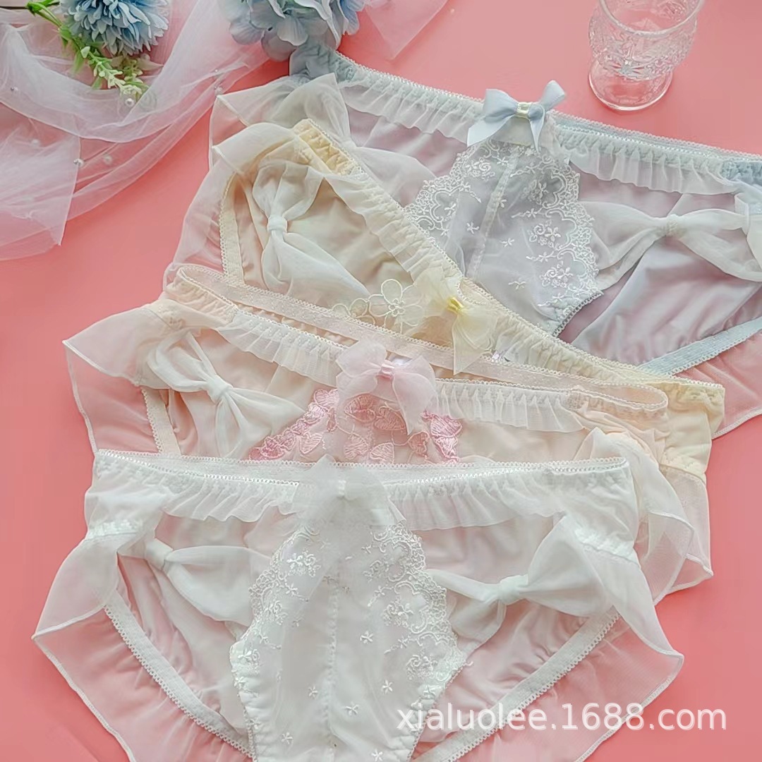 夏の日系少女セクシーレース中腰リボン透視純色三角パンツ女性下着メーカー直販