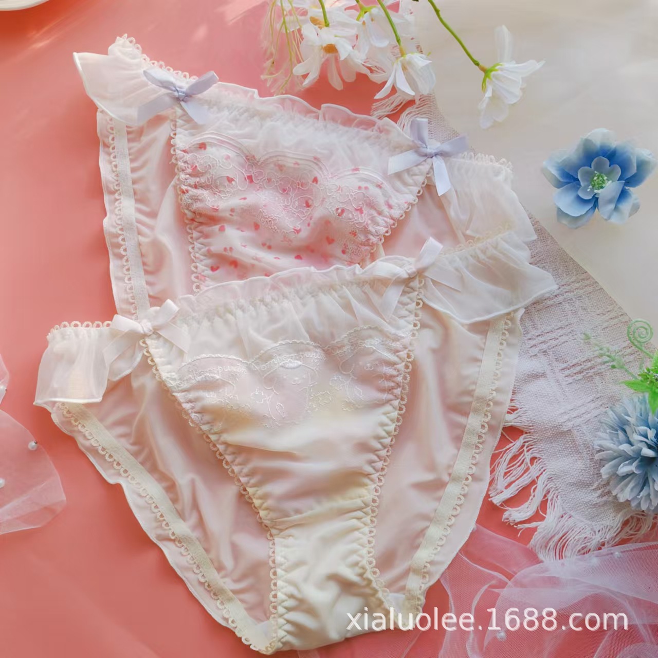 日系ミルク氷糸快適刺繍美楽ティ布丁犬セクシーレース少女下着かわいい三角パンツ