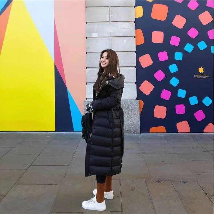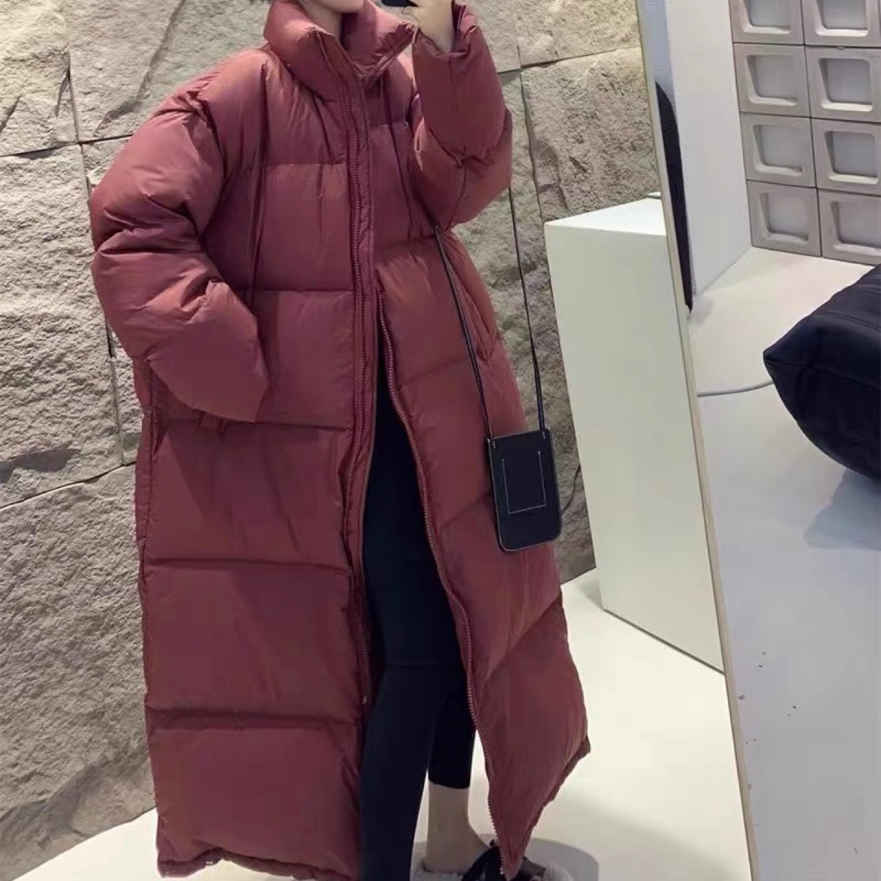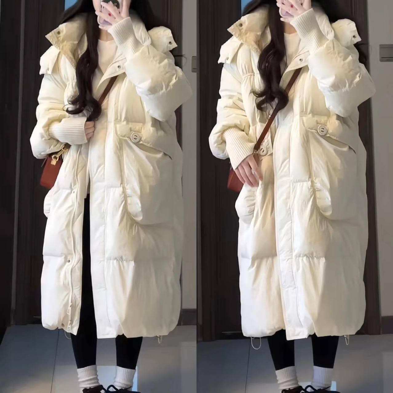 欧貨2025冬人気ロング丈膝下丈ホワイトダックダウンジャケットレディース厚手暖かい背の高い人向けゆったりコート
