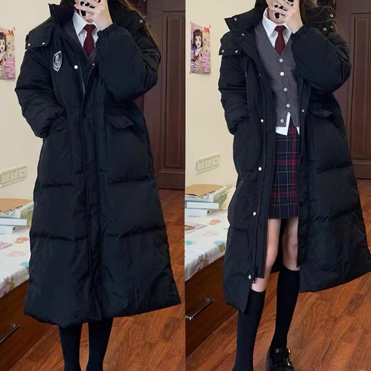 Jk新型の中長タイプの膝を越えたダウンジャケットの女性韓系学院風がゆったりしています。