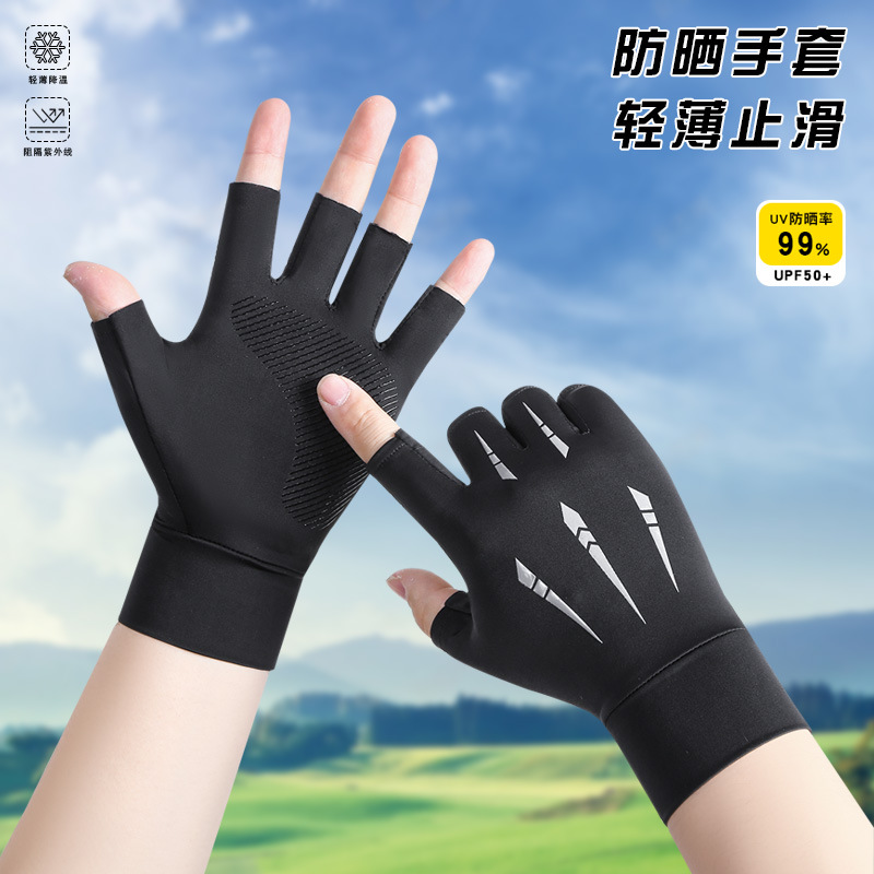 自転車手袋男夏日焼け止め二本指半指女性氷糸路亜釣り宅配便紫外線防止薄い金