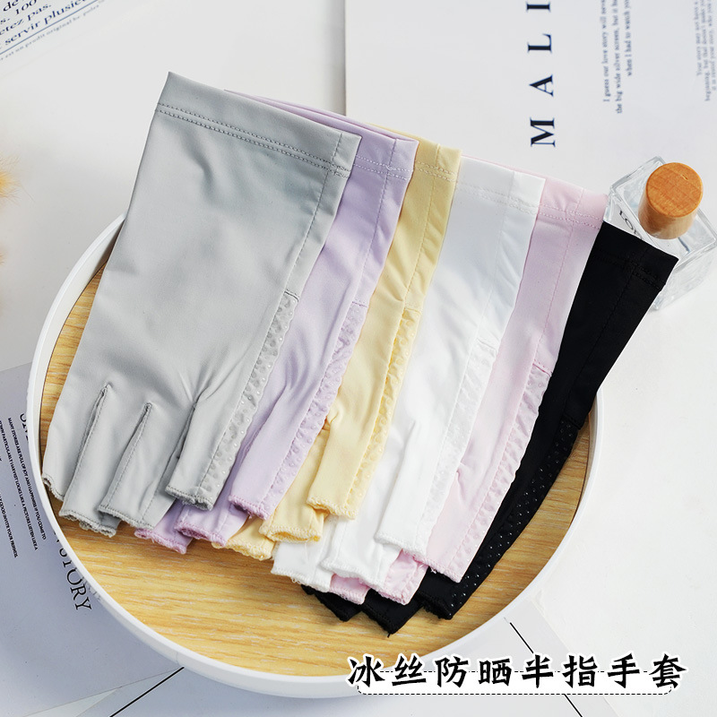 ネイルアート日焼け止め半指手袋延長女性滑り止め紫外線防止氷糸自転車でお茶を採る黒薄女夏
