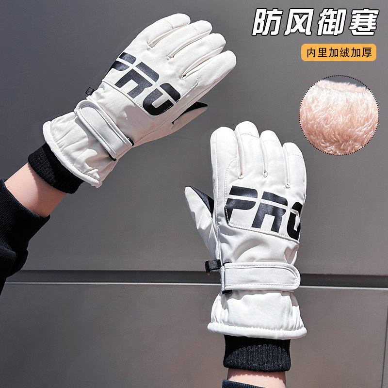 滑雪手套女士冬季骑行防风防水触屏加绒厚骑车摩托车保暖手套男冬