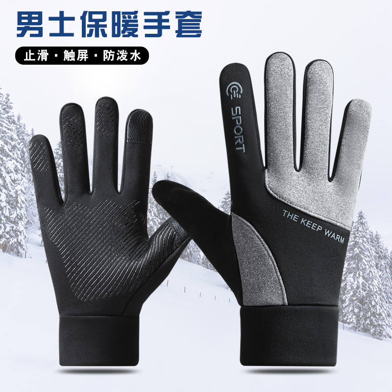 手袋男秋冬ベルベット防風防水全指タッチパネル冬屋外自転車運動滑り止め