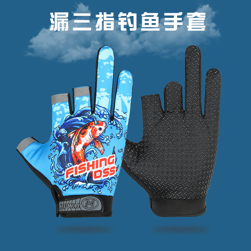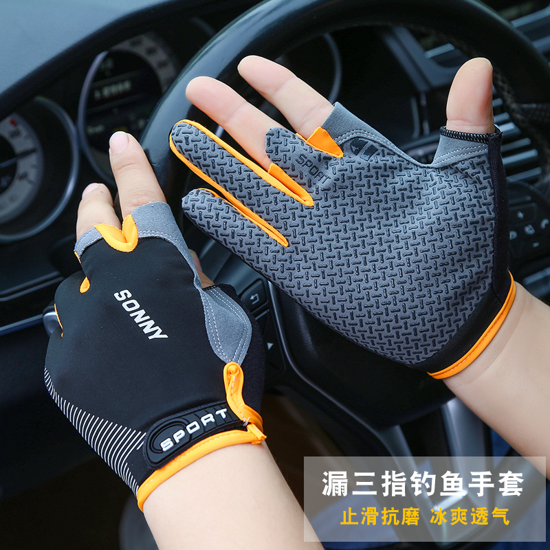漏れ三本指釣り手袋男性女性屋外薄い春夏手袋弾力氷袖騎乗三本指釣り