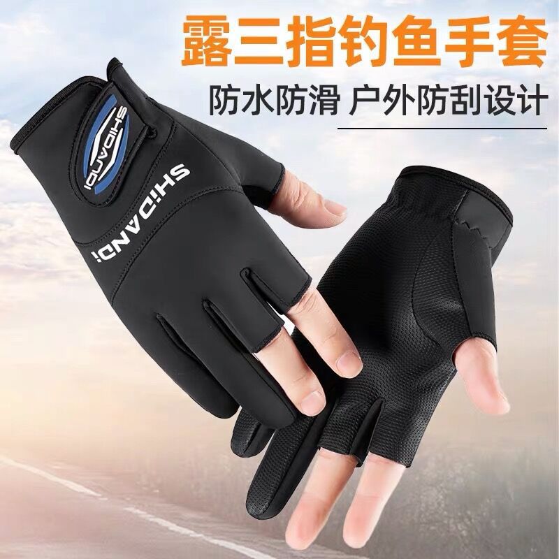 三本の指を漏らして釣りのフィットネスの手袋をします。