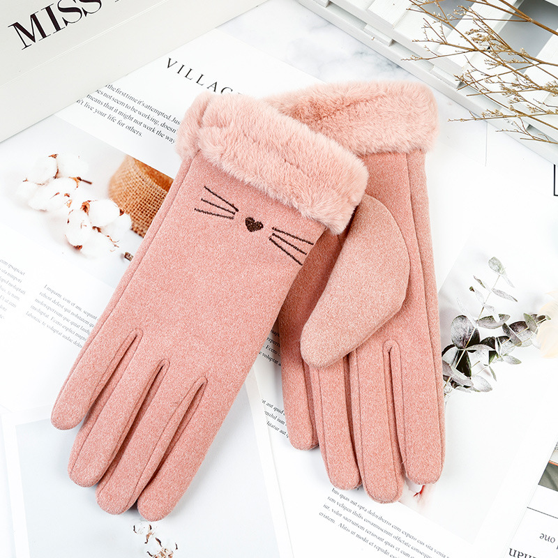 スポット卸売り秋冬モデル猫顔徳絨毛とベルベット手袋女性かわいい分指保温手袋運動騎手手袋
