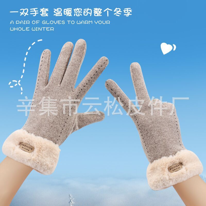 冬のウールとベルベットのタッチパネル手袋の女性韓国版ファッションは、手袋の屋外保温手袋の卸売りを指します