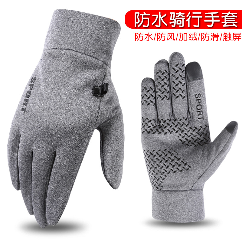 防水ベルベット手袋男性冬バイク機関車防風登山屋外自転車防雨タッチパネル手袋
