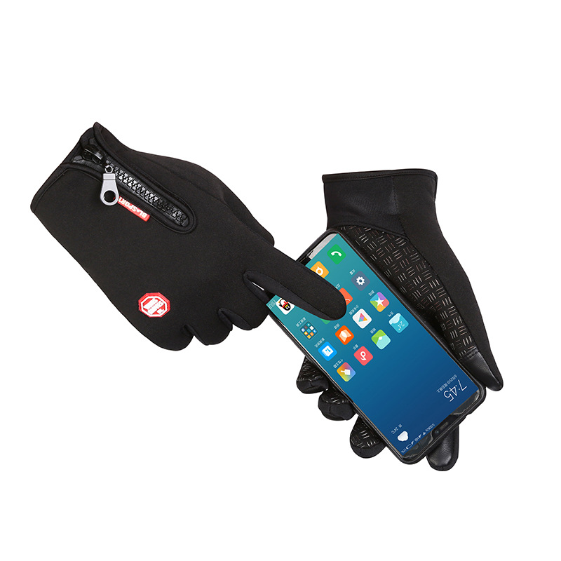 戸外騎行手袋タッチパネル男女防風防水ジッパースポーツ冬保温ダウン登山滑り止め手袋