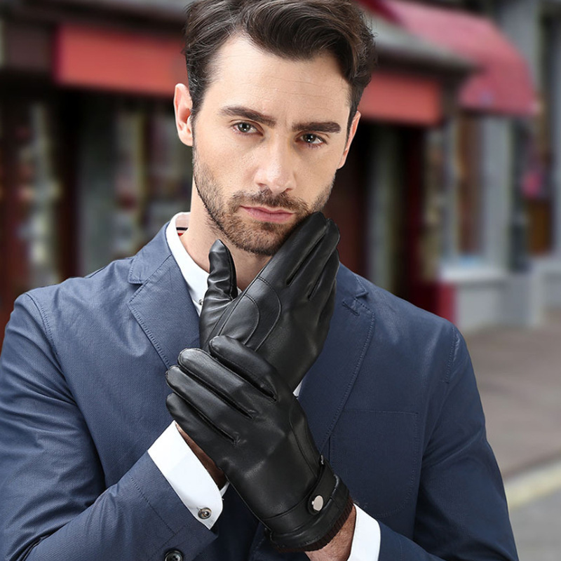 新型秋冬保温皮手袋屋外でベルベットpu皮革男性防寒タッチパネル手袋卸売り