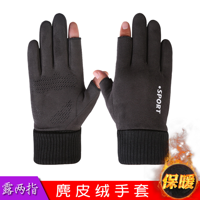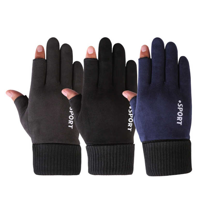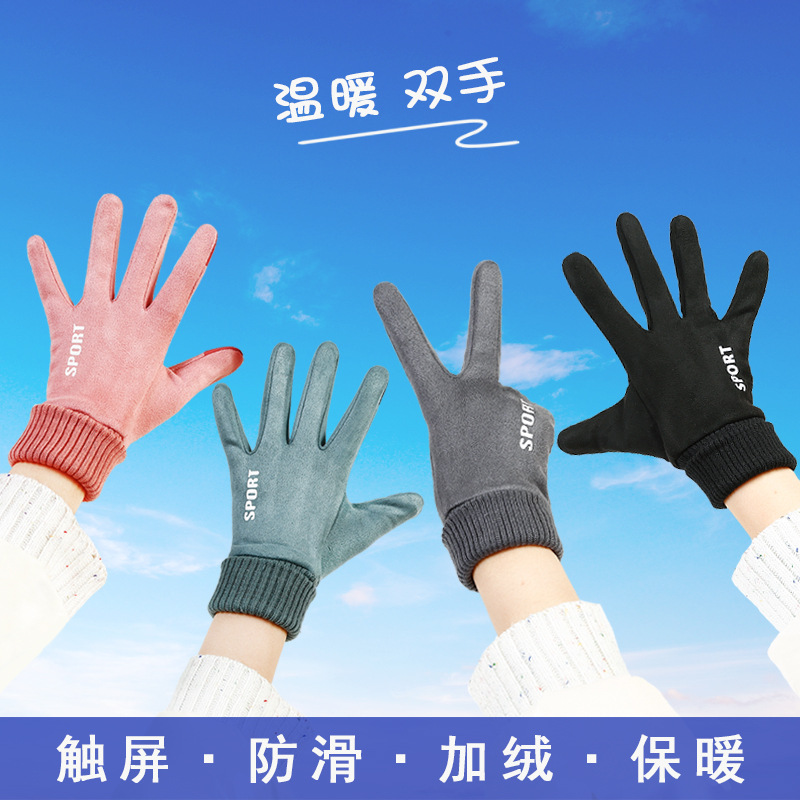 スポット卸売り男性スエード手袋秋冬保温防寒屋外自転車手袋タッチパネル運動手袋