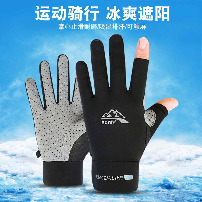 日焼け止め手袋男夏戸外氷糸タッチパネルの薄い半指手袋運転滑り止めの短い自転車手袋卸売り