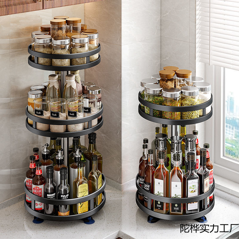 回転調味料トレイポットラック収納ラック三角コーナーキッチン用品多層キャビネットカウンタートップデスクトップアーティファクト