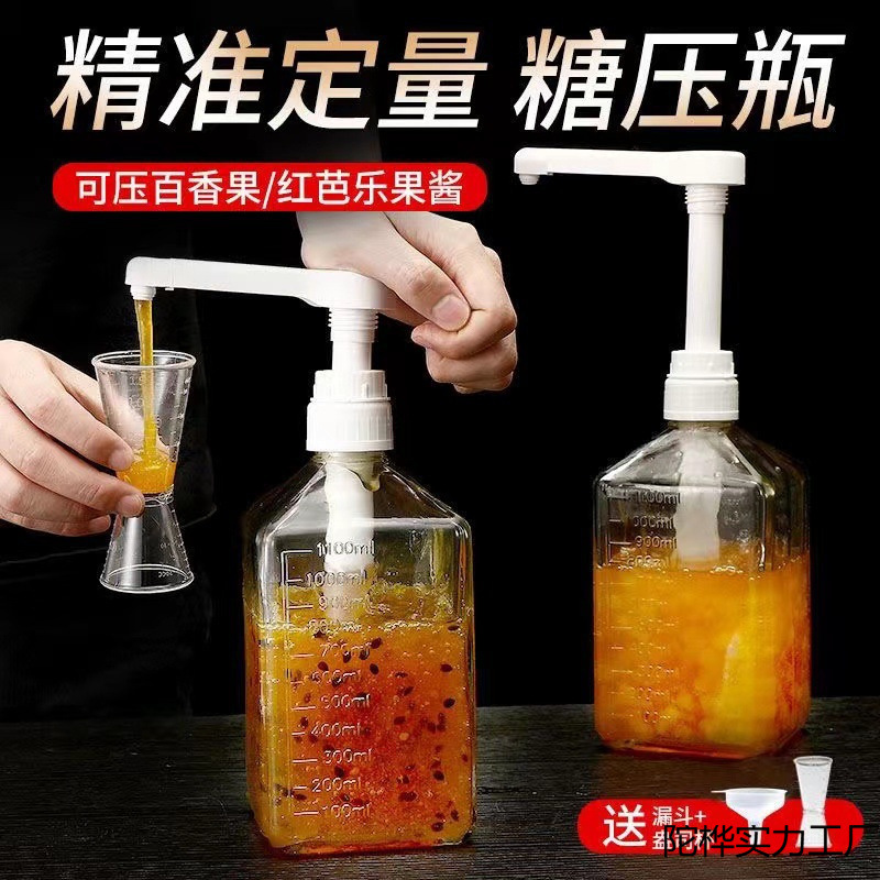 フルクトースシロップスクイーズボトルミルクティーショップガラスプレスボトル定量ジャム包装プレスノズルポンプヘッド食品商業グレード
