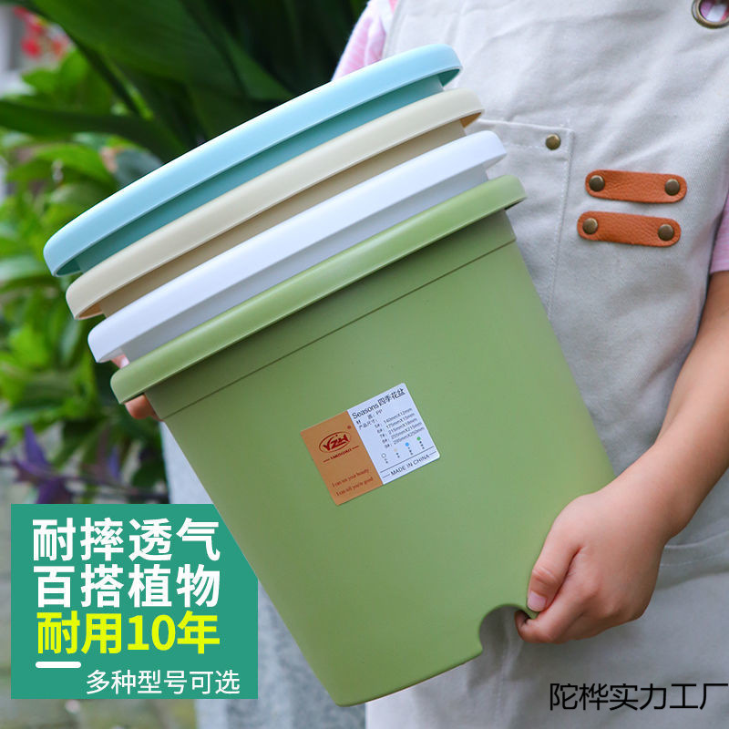 ヨーロピアンスタイルのシンプルな厚みのある樹脂プラスチック植木鉢バルコニーポトスバラアジサイ大型ガロン植木鉢特別クリアランス