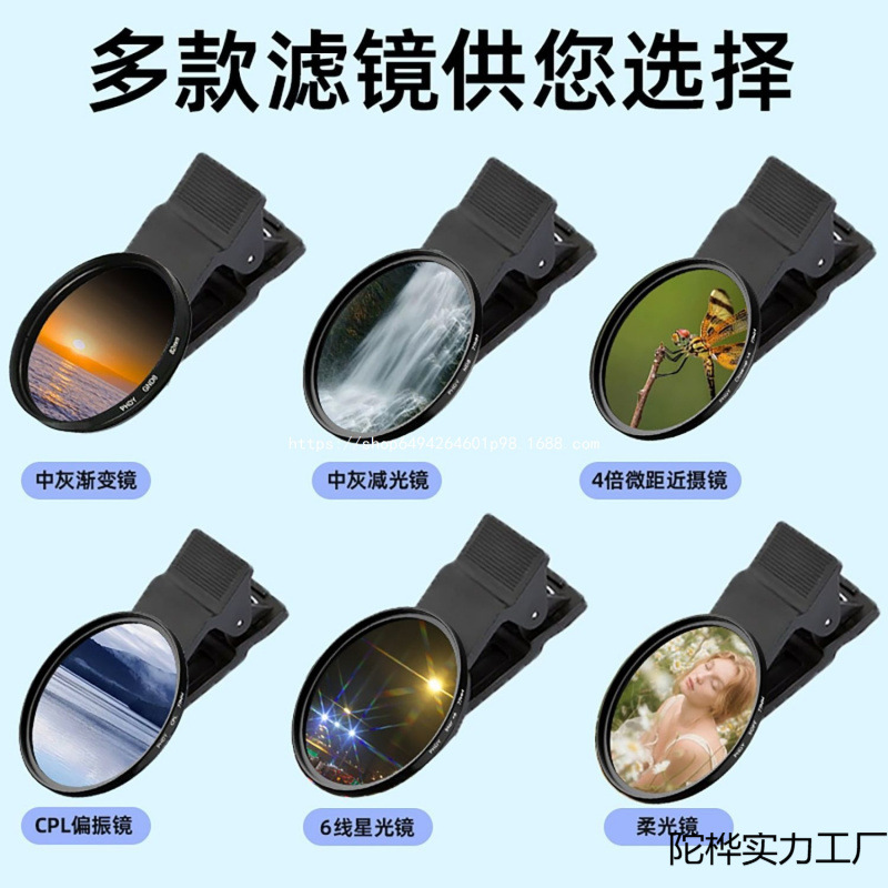 携帯電話写真撮影フィルターレンズクリップセットcpl偏光ソフトフォーカスマクロスターライトソフトライトnd減光ミラーフィルターセット