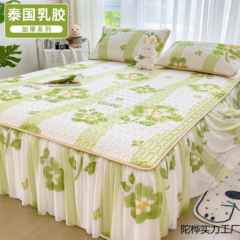 夏用クラスAラテックスマット3点セットベッドスカートエアコンマットアイスシルクソフトマット洗濯機で洗えるシングルベッドシーツカバー