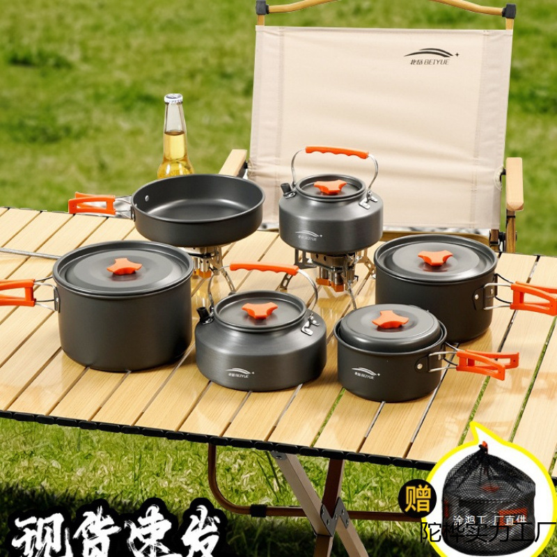 アウトドアポット、ストーブ、キャンプ用品、ケトル、調理器具、ポット、アウトドアポータブルフライパンのフルセット、中国