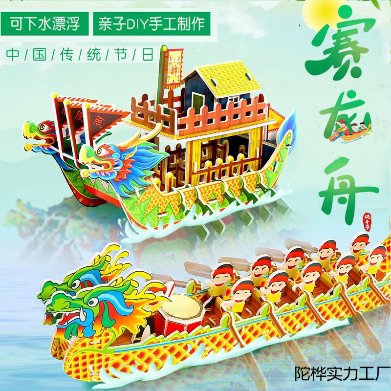 端午節ドラゴンボート立体パズル DIY 子供用紙ドラゴンボートモデルおもちゃはドラゴンボート 3D パズルに浮かぶことができます