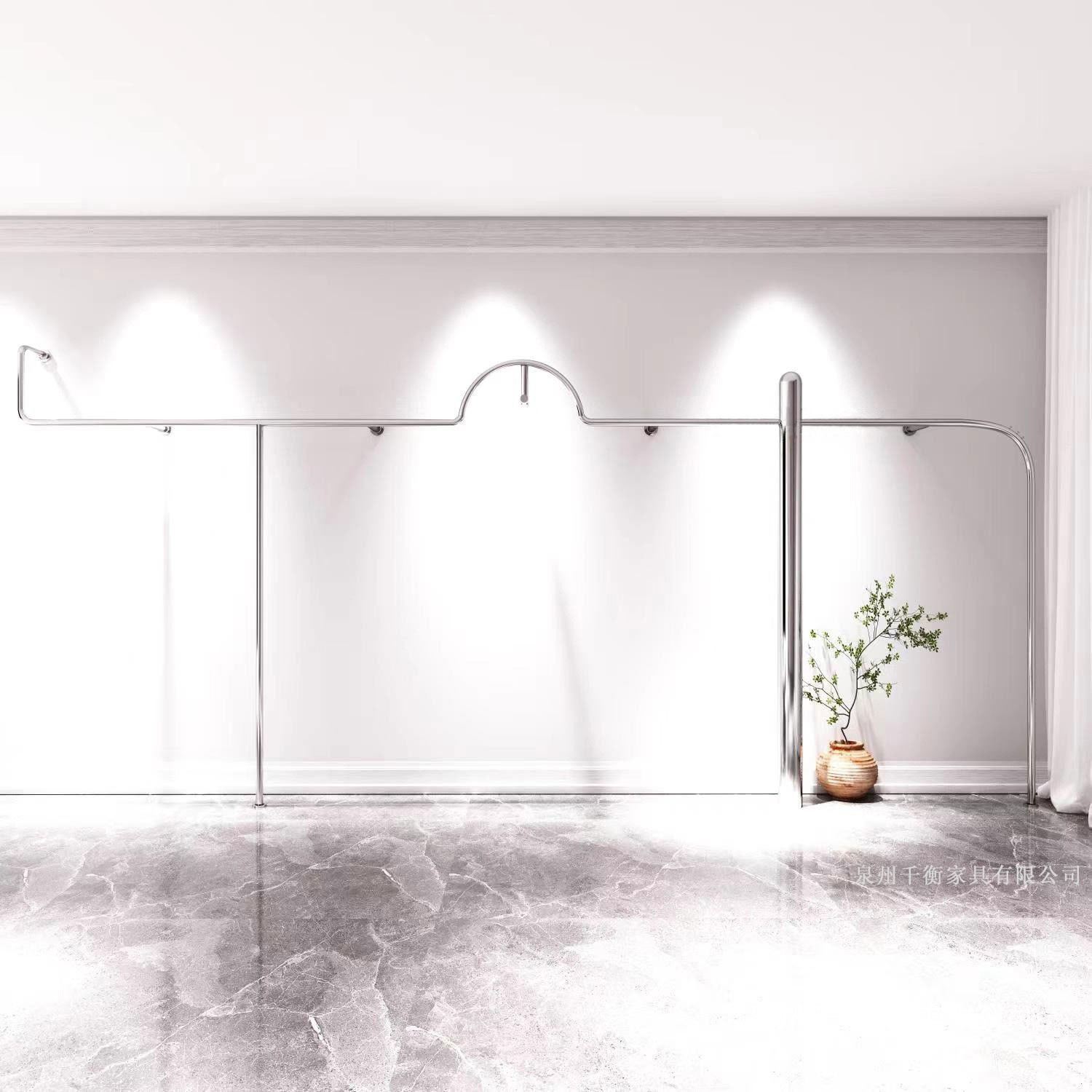 床置き式正掛けステンレス製糸引きハンガー婦人服店アーチ中島棚厚手洋服店展示棚