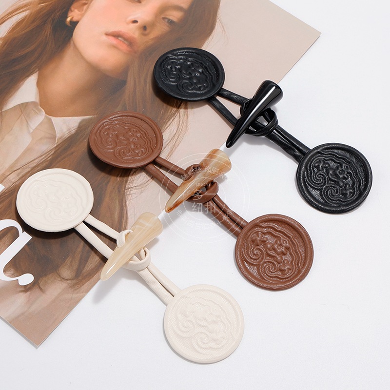 新しい茶色の皮革樹脂のボタンは、コートのコートの毛のコートの正方形のロープのボタンの装飾の手縫いのボタンの卸売りです。
