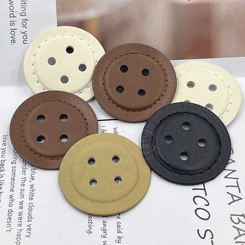 新商品の丸い革の縁の手縫いの四眼ボタンの服のコートの風衣のダウンジャケットの手縫いの装飾ボタン