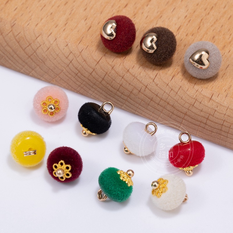 新しいクリエイティブなカラフルな植毛金属フラワーホルダー高ボタン中国風のチャイナドレス唐装漢服装飾手縫いボタン