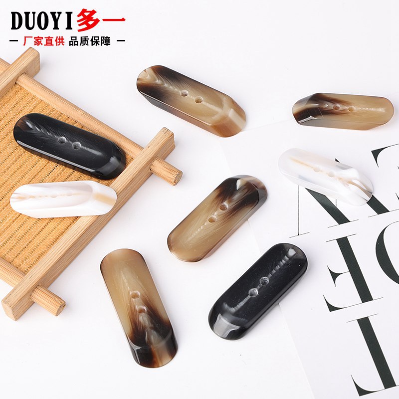 牛の角の長い条の樹脂の大きいボタンの異形の2つの目の不規則な風の服のコートの冬の服のオリーブのボタンをまねます。
