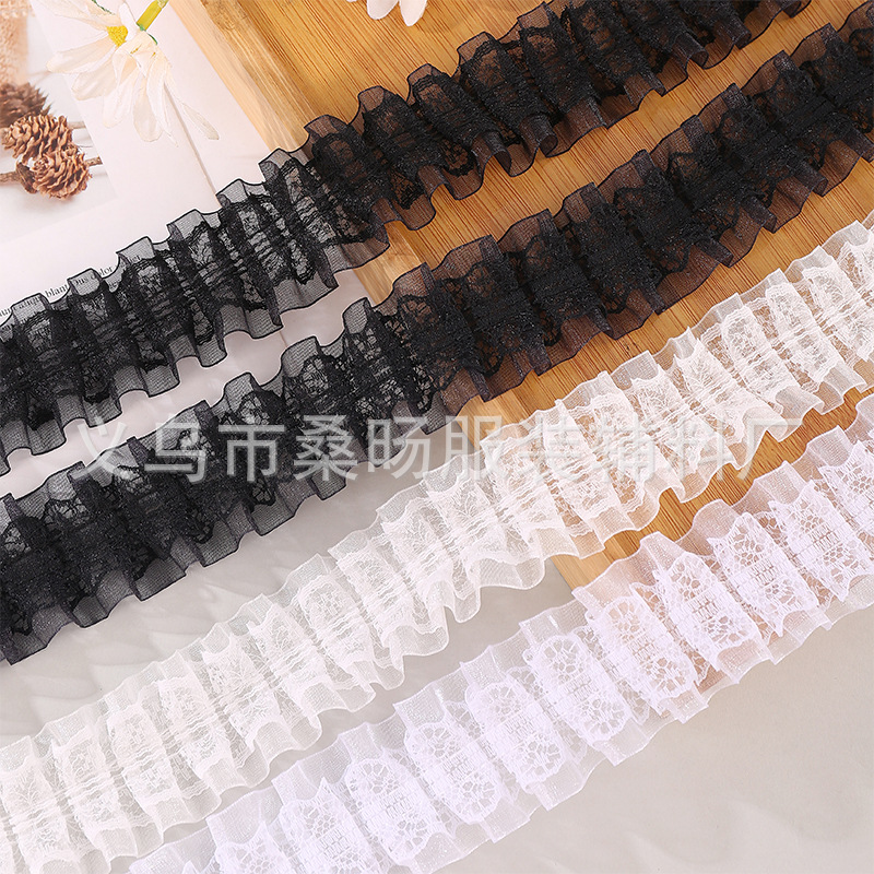 卸売り4cm白色雪紗蕾リボンしわレース手作りdiyスカート袖飾り割引レース補助材料