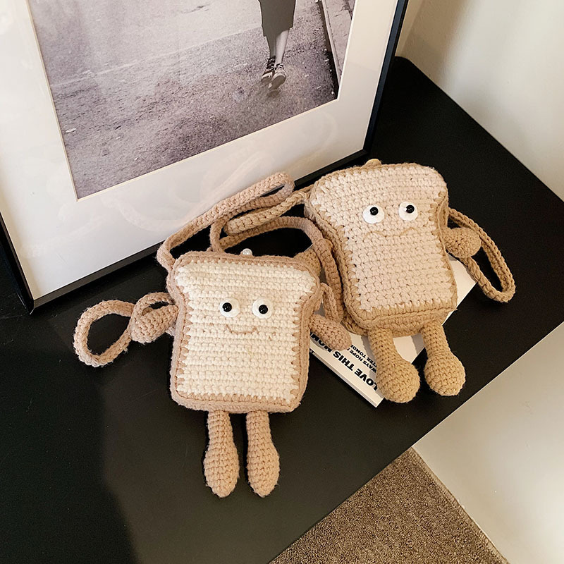 かわいい手作りの毛糸のかぎ針編みの完成品の幼児は漫画のパンの切れの子供の斜めのショルダーバッグのネットの赤いショルダーバッグを飾ります。
