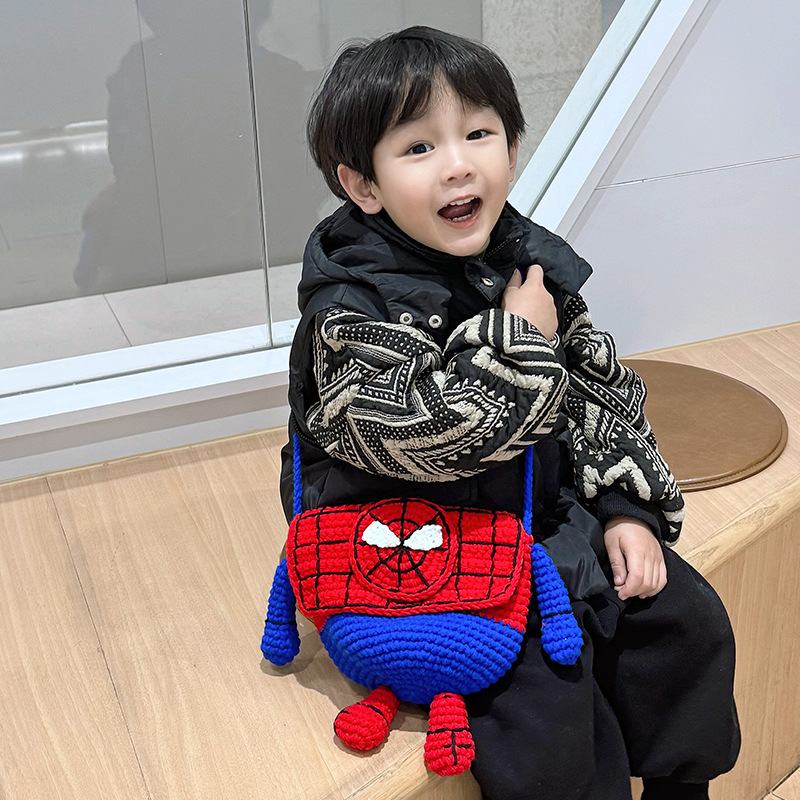 手作りのかぎ針編みの毛糸の包みの完成品のかわいい漫画の子供の小銭入れの手作業の編みの贈り物の子供の趣味の斜めのショルダーバッグ