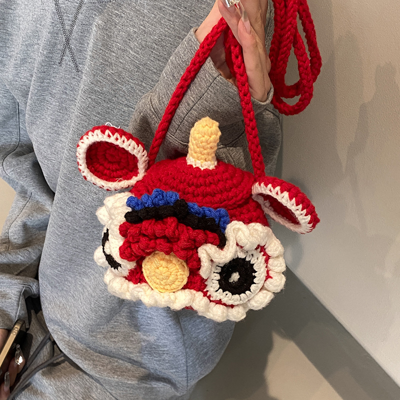 国潮覚醒ライオンバッグ新型手作り毛糸鉤織バッグ完成品かわいいお祝いミニ女性口紅斜めバッグ