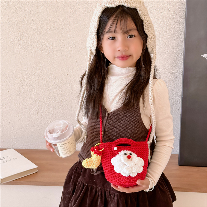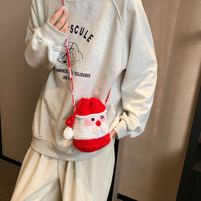 秋冬新作毛糸手作りバッグ完成品クリスマス手作りかぎ針編み斜め掛けカバン可愛いトナカイ漫画収納袋