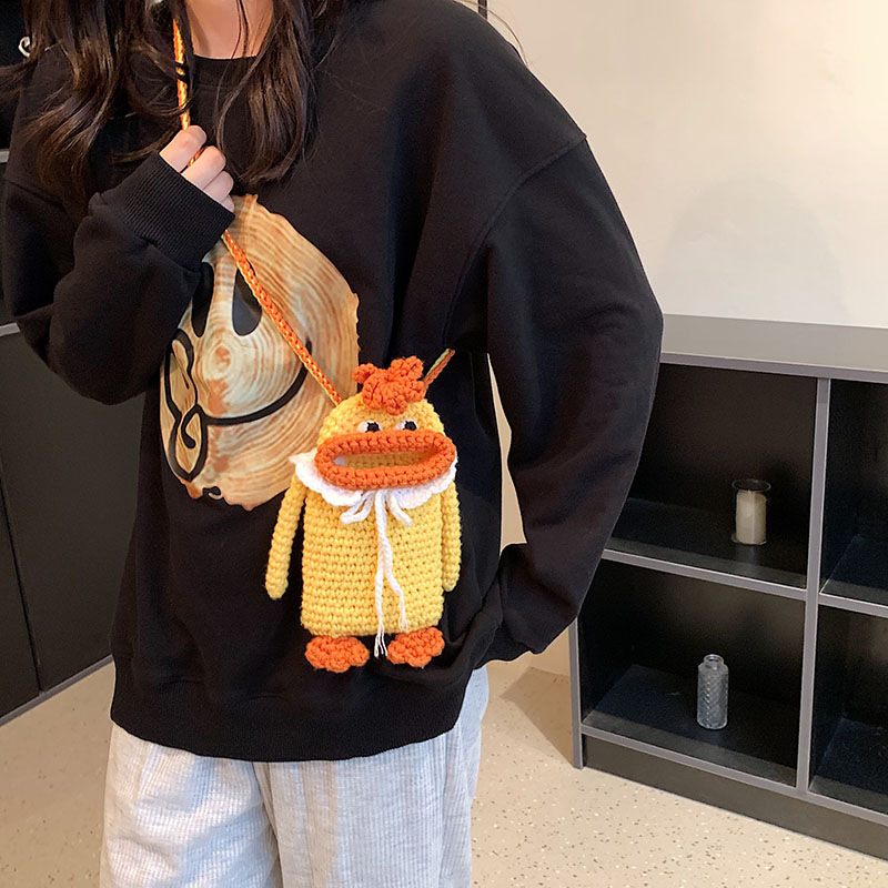 アニメ手作り毛糸包完成品の小黄鴨人工鉤織かわいい冬の斜めショルダーバッグネット赤大口ショルダーバッグ